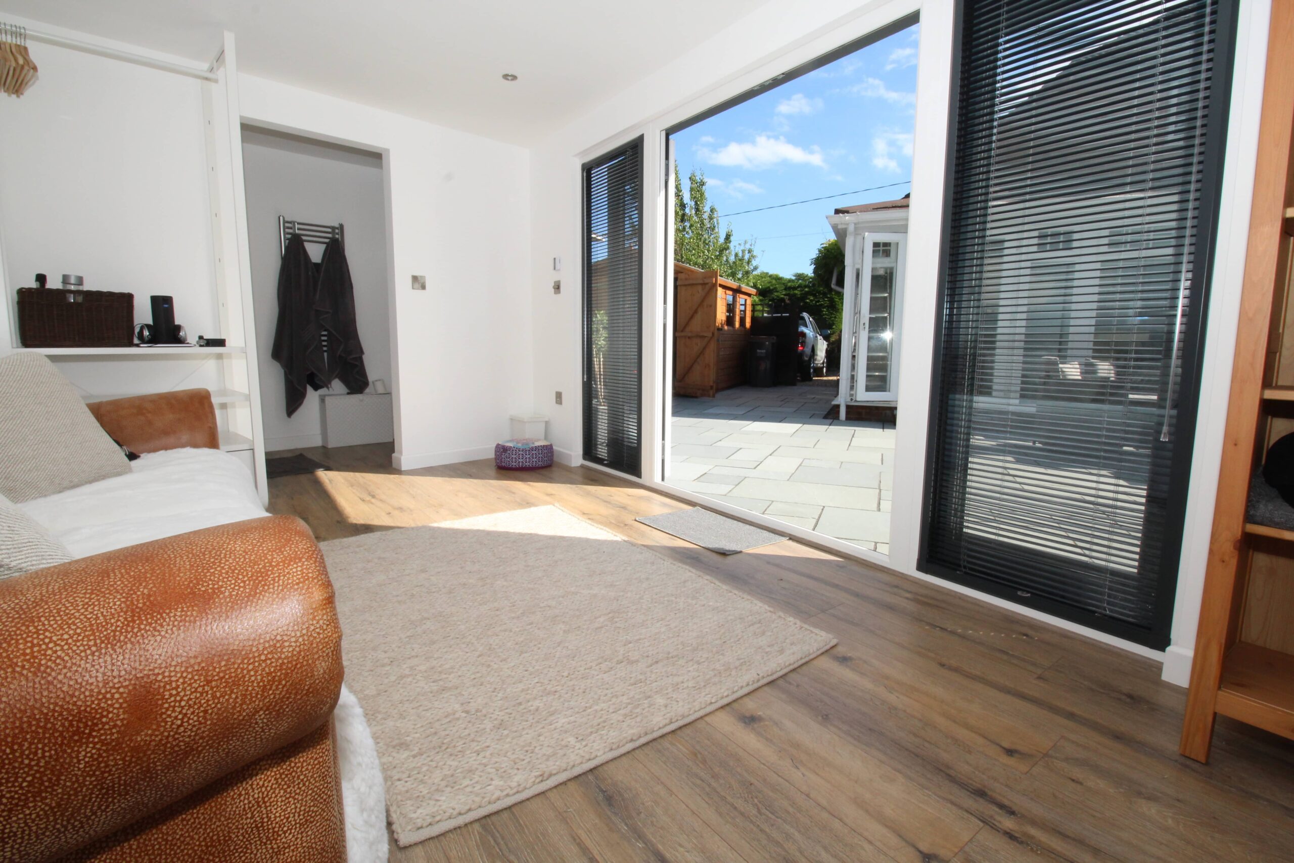 A common conversation we have with clients is the need for more space. An extension of the home that allows flexibility to be used to relax, entertain and as additional accommodation. Here we have a fantastic example of what many people are looking for. This Garden Room is split into two separate rooms. The main section has a large comfortable sofa bed so on a daily basis can be used to sit and relax, read or chat. With large French doors opening onto the patio it enhances the outside space and makes entertaining in the garden a real event. The second room is a full en suite, so when the sofa bed is out and guests come to stay they have their own space and freedom.
